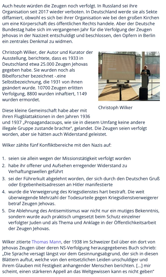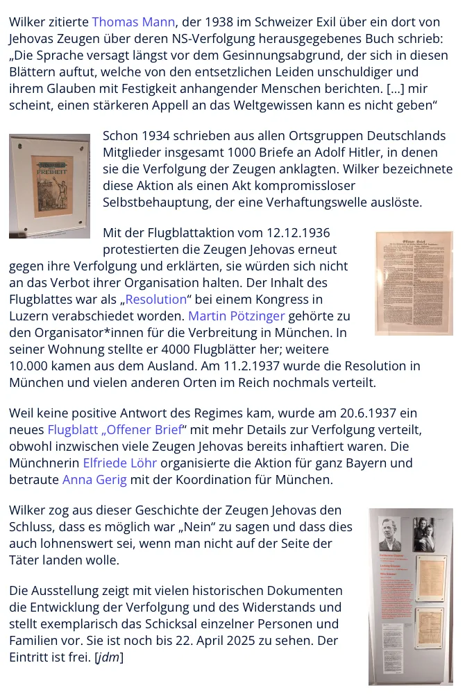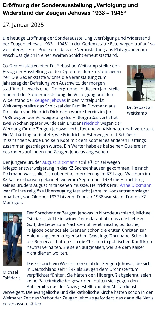 Hallo Wippingen — Eröffnung der Sonderausstellung “Verfolgung und Widerstand der Zeugen Jehovas 1933 — 1945”